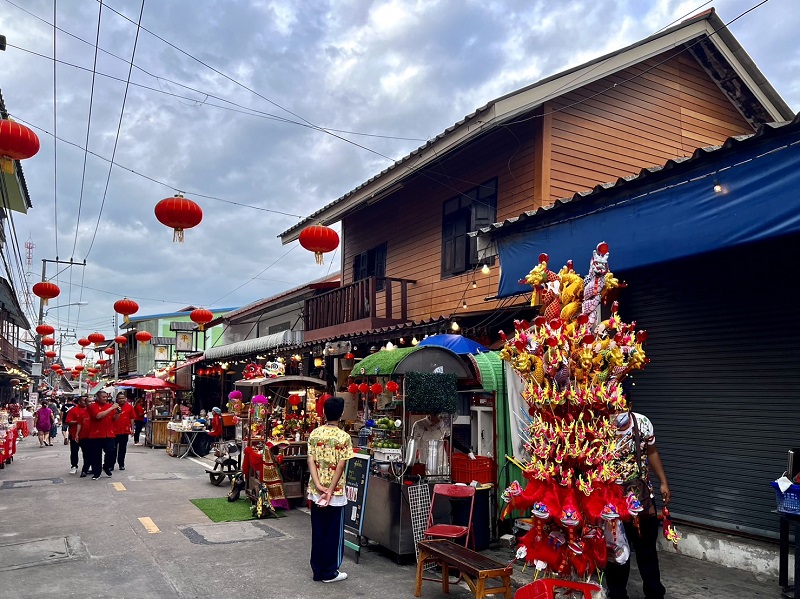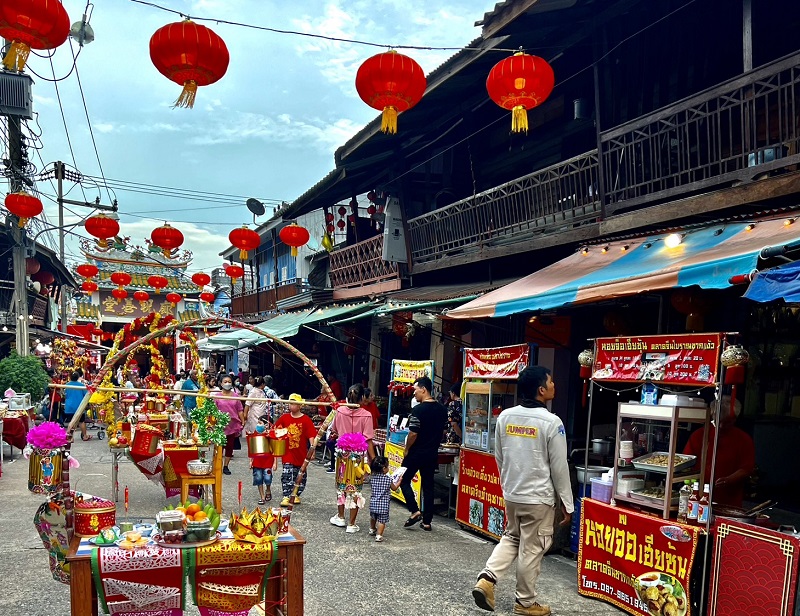 วันหยุดพักผ่อนสัปดาห์นี้ ไปเที่ยวไปสัมผัสวิถีชีวิตชุมชนชาวจีนโบราณเก่าแก่บ้านชากแง้ว อายุเกิน 100 ปี กันได้นะครับ ซึ่งเมื่อวันศุกร์ที่ 29 กันยายนที่ผ่านมา กรมส่งเสริมวัฒนธรรม กระทรวงวัฒนธรรม ยังได้เปิด 10 ตลาดบก 6 ตลาดน้ำ โครงการชุมชนวัฒนธรรมไทยสร้างสรรค์เศรษฐกิจประจำปีงบประมาณ พ.ศ. 2566 ณ บริเวณด้านหน้าศาลเจ้าแม่ทับทิมชุมชนชาวจีนโบราณบ้านชากแง้ว ให้เป็นอีกหนึ่งที่เที่ยวไฮไลท์ของชุมชนซากแง้ว ช่วงเวลา โดยมีท่านยุพา ทวีวัฒนะกิจบวร ปลัดกระทรวงวัฒนธรรม เป็นประธานเปิดงานเปิดโครงการดังกล่าว ยิ่งใหญ่เลยทีเดียวและท่านโกวิท ผกามาศ อธิบดีกรมส่งเสริมวัฒนธรรม กล่าวให้ฟังว่า โครงการ “10 ตลาดบก 6ตลาดน้ำ” เป็นการสืบสานวัฒนธรรมไทยและสร้างรายได้ให้กับชุมชนเพื่อเป็นการกระตุ้นเศรษฐกิจของประเทศ โดยเฉพาะเรื่องการท่องเที่ยวที่มาช่วยชุบชีวิตพลิกฟื้นเศรษฐกิจชุมชนนี้ นับว่าเป็นการต่อลมหายใจให้กับคนจีนรุ่นพ่อแม่อากงอาม่าและทำให้ชุมชนจีนโบราณยังคงไม่สูญหาย