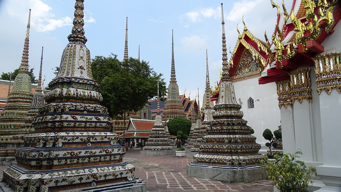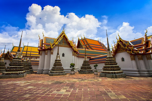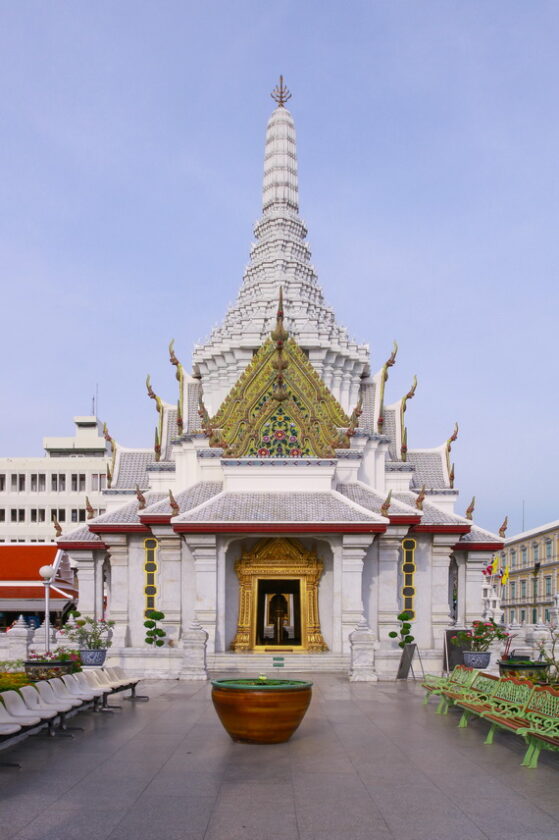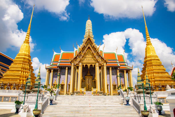 Chakri Maha Prasat Throne Hall is located in Royal Grand Palace, BangkokBeautiful building of Wat Phra Kaew Temple of the Emerald Buddha, grand palace on the cloudy blue sky day, the most famous spot and must visit place and temple in Bangkok, Thailand from the front doorCity Pillar Shrine, Bangkok