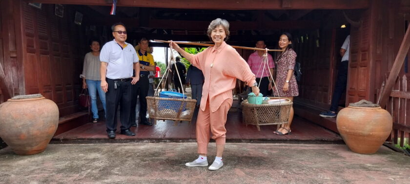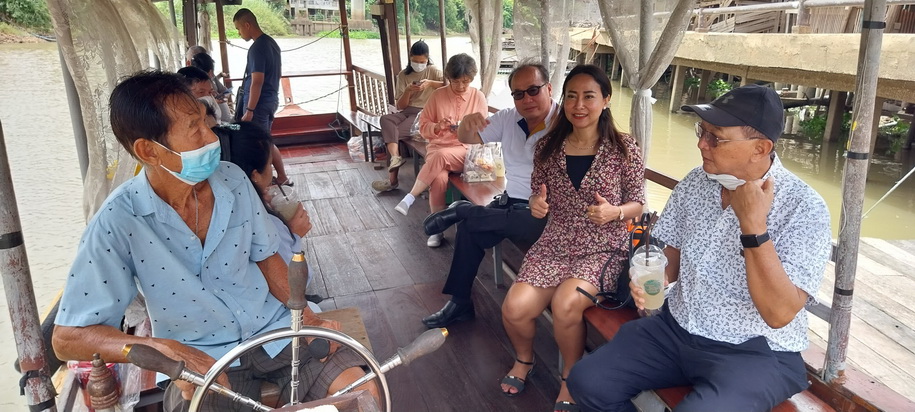 ทางคณะได้นั่งเรือชมบรรยากาศ วิถีชีวิตสองฝั่งแม่น้ำท่าจีน และแวะชมบ้านเรือนไทยสาคร ของลุงเช็ง หรือนายสุจิตต์ เล่ห์จันทร์พงษ์ ซึ่งเป็นบ้านเรือไทยย้อนยุค ตั้งอยู่ที่ บ้านเลขที่ 13 หมู่ที่ 1 ต.สามชุก อ.สามชุก จ.สุพรรณบุรี เป็นบ้านเรือนไทยหมู่ขนาดใหญ่ อยู่รวมกันหลายหลัง เชื่อมต่อกันเป็นแนวยาว กว่า 16 หลัง มีความเก่าแก่ ไม่ต่ำกว่า 100 ปี ถือเป็นแหล่งท่องเที่ยวเชิงวัฒนธรรมแห่งใหม่ของจังหวัดสุพรรณบุรี