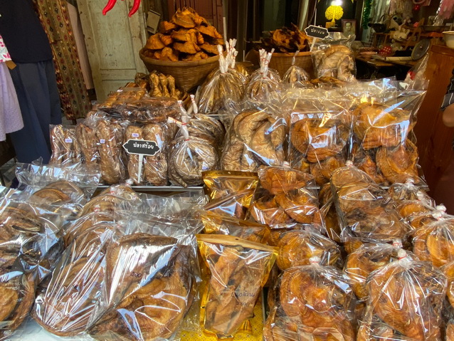 อิ่มบุญกันแล้ว ก็ได้ไปช้อปปิ้งที่ ตลาดสามชุก ซึ่งเป็นห้องแถวไม้ริมแม่น้ำท่าจีน ตั้งอยู่ในอำเภอสามชุก จังหวัดสุพรรณบุรี ในอดีตตลาดสามชุกเป็นย่านการค้าสำคัญ และเป็นแหล่งชุมชนของชาวไทยเชื้อสายจีน ตลาดสามชุกเปิดทุกวัน ตั้งแต่ 7 โมงเช้าถึง 6 โมงเย็น มีของกินอร่อย ๆ ทั้งอาหารและขนมโบราณพร้อมของฝากมากมาย
