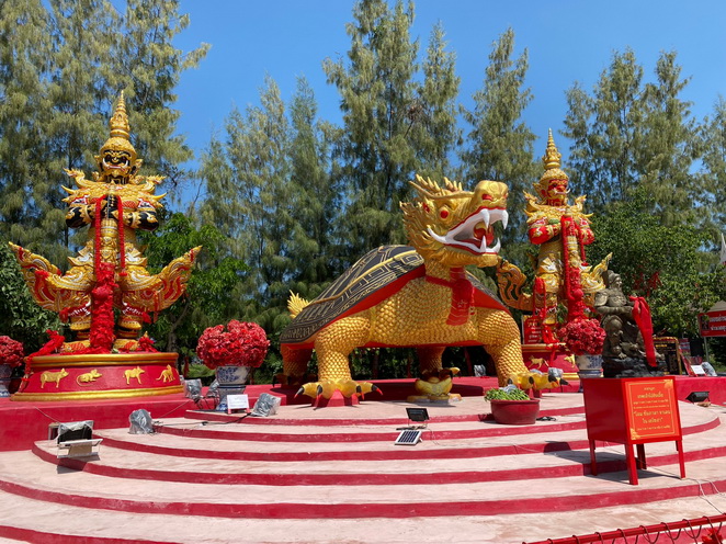 ออกจากวัดป่าเลยก์ไล เดินทางไปไหว้พระใหญ่ หรือ พระพุทธปุษยคีรีศรีสุวรรณภูมิ (หลวงพ่ออู่ทอง) ปางโปรดพุทธมารดา เป็นพระพุทธรูปในอิริยาบถประทับนั่งขัดสมาธิ แกะสลักด้วยหินธรรมชาติ ขนาดความสูง 108 เมตร ฐานกว้าง 88 เมตร หน้าตักกว้าง 65 เมตร สร้างขึ้นบนผาสูงใหญ่เสียดฟ้าที่มีชื่อว่า “ผามังกรบิน” และเนื่องจากเดิมที่แห่งนี้เคยเป็นเขตสัมปทานระเบิดภูเขาทำโรงโม่หิน ก่อนจะหมดสัญญาและทิ้งให้รกร้าง ทางองค์การบริหารการพัฒนาพื้นที่พิเศษเพื่อการท่องเที่ยวอย่างยั่งยืน (องค์การมหาชน) หรือ อพท. จึงเข้ามาปรับทัศนียภาพด้านหน้าองค์พระให้สวยงามน่ามอง