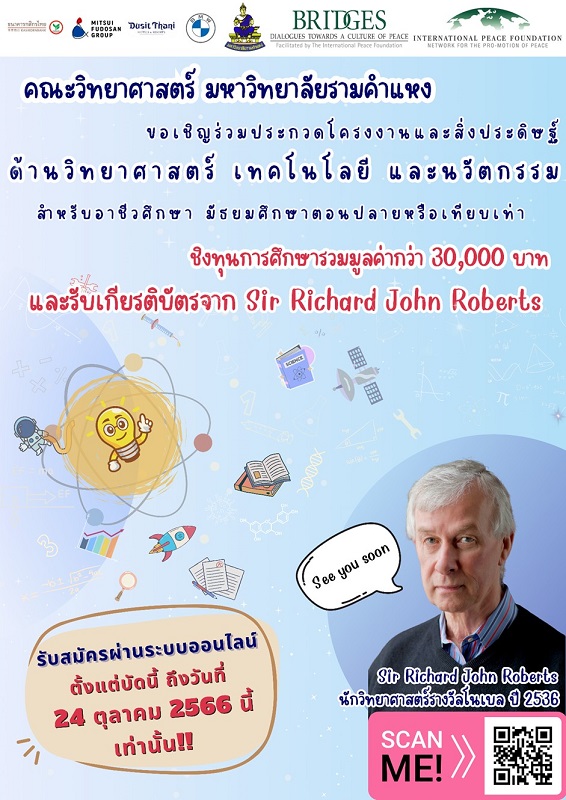 นอกจากนี้ยังมีการจัดประกวดโครงงานวิทยาศาสตร์และสิ่งประดิษฐ์ ระดับมัธยมศึกษาและอาชีวศึกษา ชิงทุนการศึกษากว่า 3 หมื่นบาท พร้อมรับเกียรติบัตรจาก Sir Richard John Roberts นักวิทยาศาสตร์รางวัลโนเบล