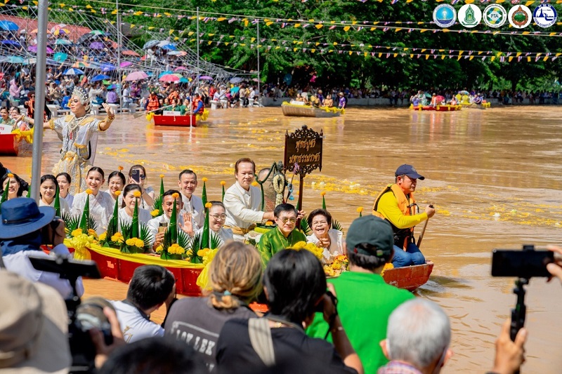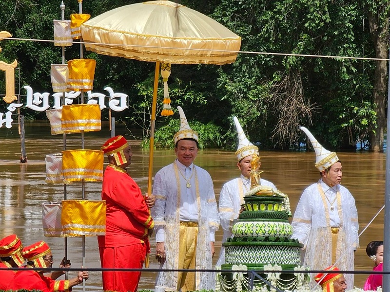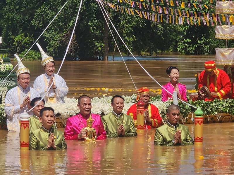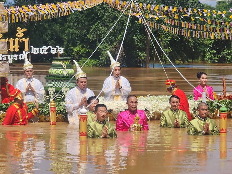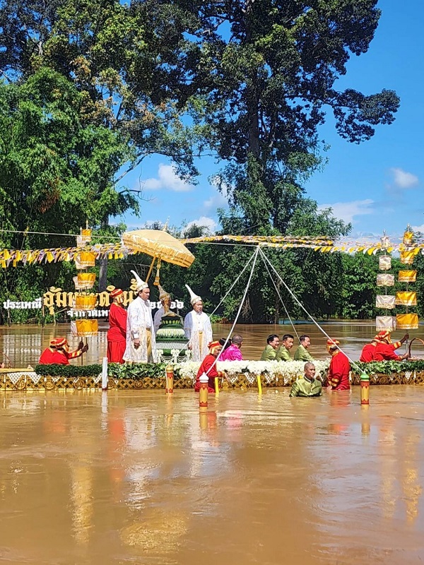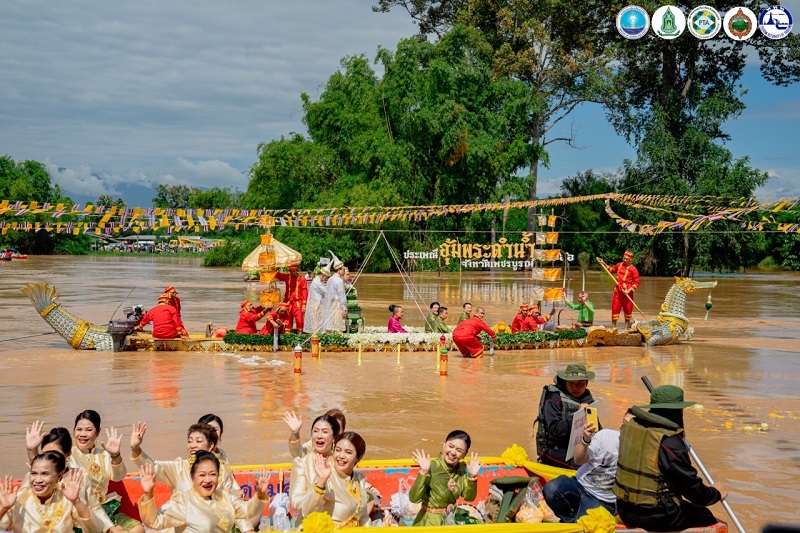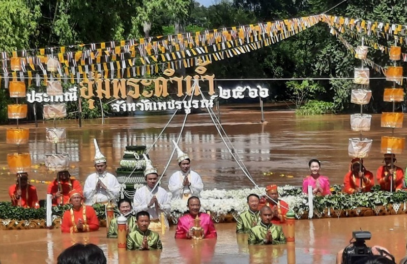 “ประเพณีอุ้มพระดำน้ำ” หนึ่งเดียวในโลกของจังหวัดเพชรบูรณ์ การเดิน”ตามรอยพ่อขุนผาเมือง” มาเป็นวันที่ 3 และเป็นวันทำพีธีอุ้มพระดำน้ำที่วัดไตรภูมิ ซึ่งจัดกันมาอย่างยาวนาน สืบทอดกันมานับ ศตวรรษ ซึ่งกลายเป็นงานทางวัฒนธรรมที่ถ่ายทอดกันมา ผู้ที่จะมาอุ้ม “พระพุทธมหาธรรมราชา” พระพุทธรูปศักดิ์สิทธิ์คู่บ้านคู่เมือง จะต้องเป็น”เจ้าเมือง”พร้อมทั้งผู้ดำรงตำแหน่ง เวียง วัง คลัง นา เท่านั้น จากกาลเวลาผ่านมา กลายมาเป็นผู้ว่าฯเท่านั้นและข้าราชการระดับสูงของจังหวัดเพชรบูรณ์ จะต้องล่องเรือมาถึงจุดที่ต้องอุ้มพระดำน้ำ ในแม่น้ำป่าสักซึ่งบางปีน้ำอาจไม่มาก ก็จะเห็นการอุ้มพระดำน้ำบนแท่นได้ แต่ปีนี้น้ำหลากมากทำให้พิธีจึงต้องระมัดระวังอย่างสูง น้ำปริ่มฝั่ง มีมากเหลือเกินสีเหลืองขุ่นข้น