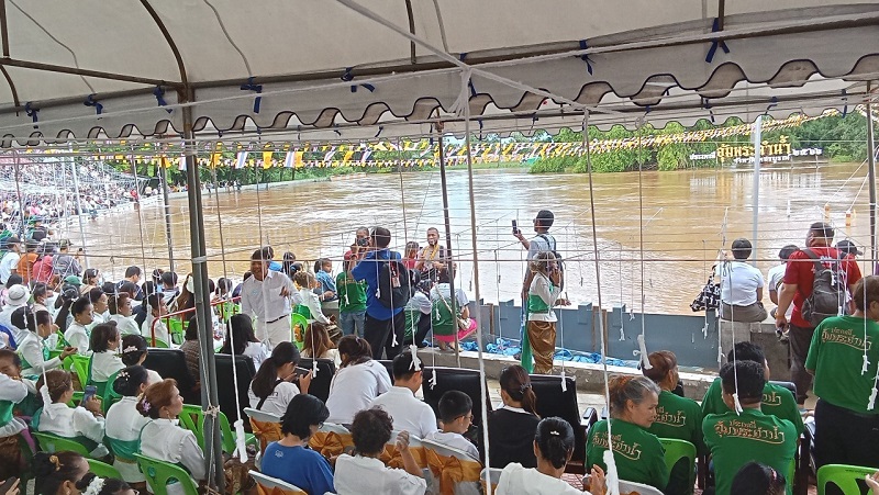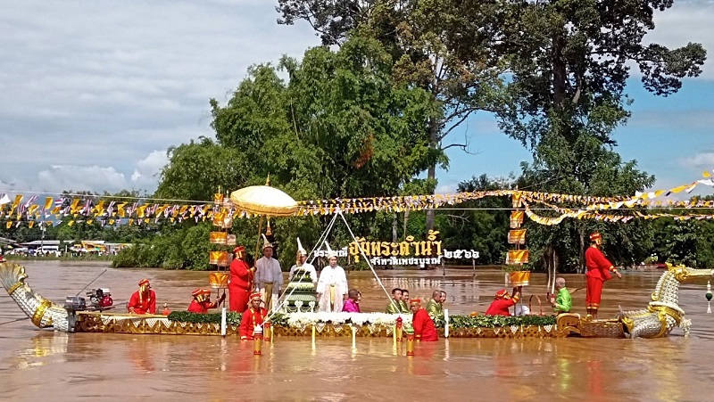 หลังจากรับประทานอาหารเช้า เช็กเอาต์ออกจากโรงแรมที่หล่มสัก มุ่งหน้าเข้าสู่ตัวจังหวัดเพชรบูรณ์ ใช้เวลาเดินทางร่วมชั่งโมง ต้องรีบไปสู่จุดที่นั่งที่ทางจังหวัด/ท่องเที่ยวและกีฬา/รวมถึง ททท.ได้จัดที่นั่งอำนวยความสะดวกให้กับชาวคณะซึ่งอยู่ข้างๆศาลาจัดงานที่จะมีผู้หลักผู้ใหญ่ทางรัฐบาล คุณสันติ พร้อมพัฒน์ รัฐมนตรีช่วยว่าการฯมาเป็นประธานพิธีกับข้าราชการผู้ใหญ่ของจังหวัดเพชรบูรณ์ เมื่อถึงเวลาทำพิธี ทางคณะสงฆ์จังหวัดฯได้สวดมนต์เพื่อเป็นสิริมงคล ขบวนแห่ “พระพุทธมหาธรรมราชา” ทางเรือได้ล่องมาตรงจุดที่จะทำพิธีอุ้มพระดำน้ำ นอกจากขบวนเรือของท่านผู้ว่าฯ ยังมีขบวนเรือของข้าราชการและเอกชน รวมถึงขบวนศิลปินดารา ที่เข้ามาร่วมงาน บนแม่น้ำป่าสักที่เชี่ยวกราก เป็นที่น่าตื่นเต้นแก่ผู้ที่พบเห็นบนอัฒจันทร์ของอีกฟากฝั่ง ปีนี้น้ำมากเลยมีคนเข้ามาดูฝั่งเดียว และ ตรงการทำพิธีอุ้มพระดำน้ำ เป็นทางโค้งของสายน้ำ เป็นวังวนของแม่น้ำที่เชี่ยวกรากดูน่ากลัว แต่กลับตื่นเต้น พวกเราถูกจัดให้อยู่ข้างหน้าเพื่อถ่ายรูปเก็บภาพ ซึ่งพิธีเริ่มอุ้มพระดำน้ำจริงๆเกือบถึงเที่ยงวัน เราอยู่จนเสร็จพิธีและออกมารอนั่งรถตู้กลับที่โรงแรมเพื่อทานข้าวเที่ยงกัน