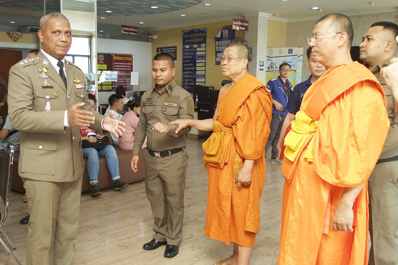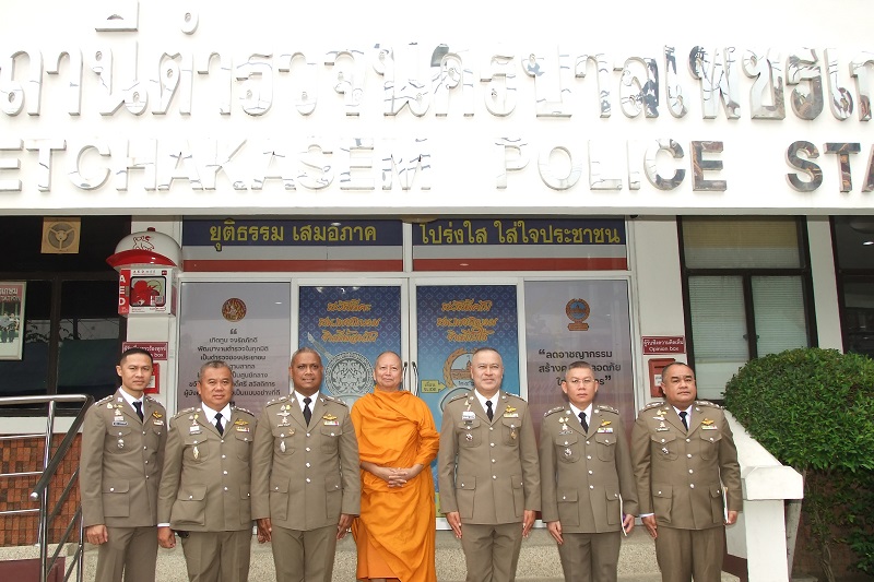 ช่วงเช้า พระพรหมบัณฑิต กรรมการเถรสมาคม เจ้าอาวาสวัดประยุรวงศาวาส ประธานฝ่ายสงฆ์ พิธีทำบุญ พระสงฆ์ 9 รูป พระพรหมบัณฑิต ทำพิธีเจิมประตูทางเข้าศูนย์ฯ เพื่อเป็นสิริมงคล สน.เพชรเกษม