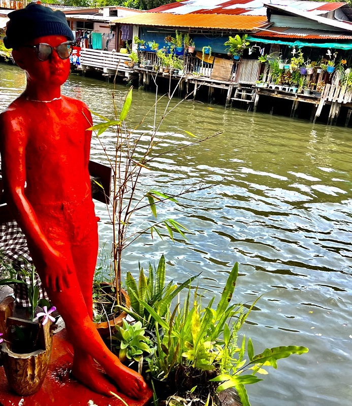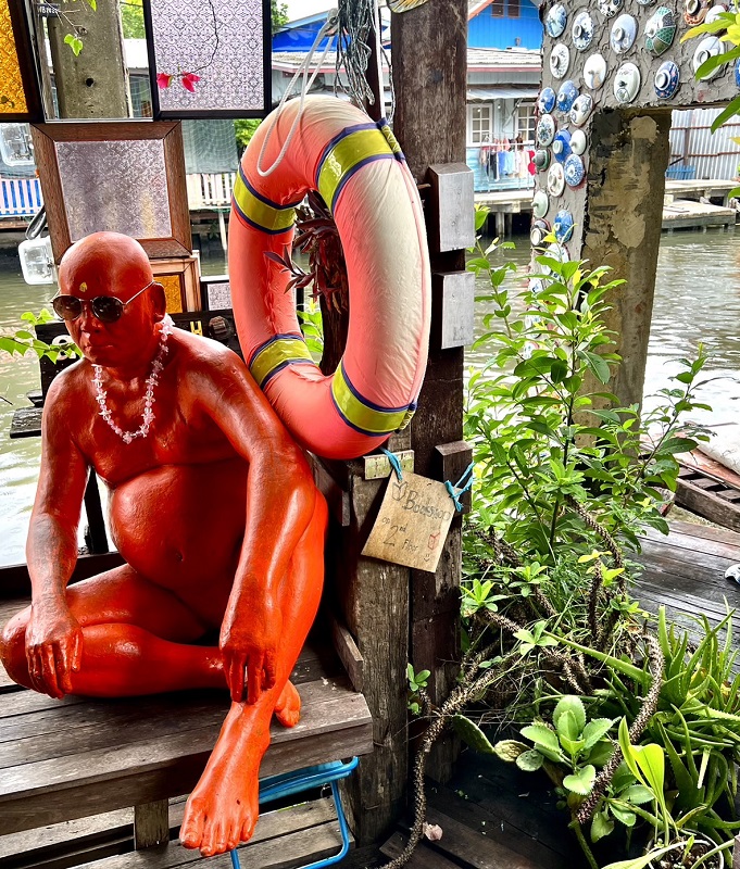 ส่วนห้องแถวไม้ริมสายน้ำคลองบางหลวงนั้นเรียกว่า “ตลาดคลองบางหลวง” เดิมทีเป็นย่านฝั่งธนบุรีคึกคักด้วยผู้คนมากมายพูดได้เลยว่าเศรษฐกิจดีเพราะมีร้านขายทองคำมากถึง 5 ร้านทองและต่อมาเมื่อความเจริญเข้ามามีการตัดถนนหนทางผ่านก็ใช้รถยนต์กันส่วนใหญ่ก็เลยทำให้ตลาดริมน้ำคลองบางหลวงเริ่มเงียบเหงาลงต่อมาภาครัฐก็ส่งเสริมการท่องเที่ยวเพื่อสัมผัสวิถีชีวิตชุมชนย่านตลาดเก่า เช่นกันตลาดคลองบางหลวงก็กลับมาเป็นสถานที่ท่องเที่ยวโดยเฉพาะ “บ้านศิลปิน” ถึอว่าเป็นการจุดประกายความคิดเรื่องของศิลปะที่ เป็นจุดแวะท่องเที่ยวเพราะบริเวณชานเรือนไม้มีหุ่นสวมแว่นตา นั่งเหม่อมองดูคลองบางหลวง ทุกวันนี้ “ตลาดคลองบางหลวง” กลายเป็นแหล่งรวมของศิลปะหลายรูปแบบทั้งการแสดงหุ่นละครเล็ก งานวาดรูป เพ้นท์รูปขาย ใครสนใจเรื่องงานศิลปะไปเที่ยวชมกันได้เพราะงานศิลปะสามารถบำบัดใจได้อย่างดี แบบที่เรียกว่าศิลปะบำบัดนั่นแหละครับหรือที่ยุคนี้เขาเรียกกันว่ามันคือการ สร้างสุข “ฮีลใจ” ได้เลย