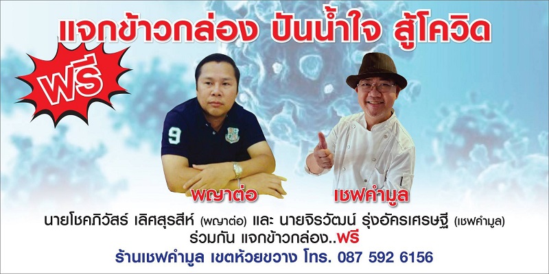 “พญาต่อ” ร่วมกับ “เชฟคำมูล” แจกข้าวกล่อง ช่วยคนตกงาน ฝ่าวิกฤต โควิด-19