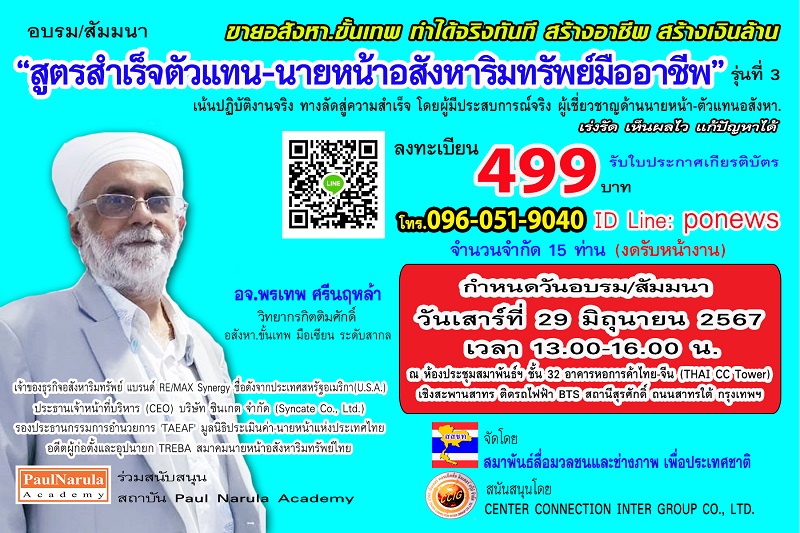 อบรม/สัมมนา “สูตรสำเร็จตัวแทน-นายหน้าอสังหาริมทรัพย์มืออาชีพ” รุ่นที่ 3