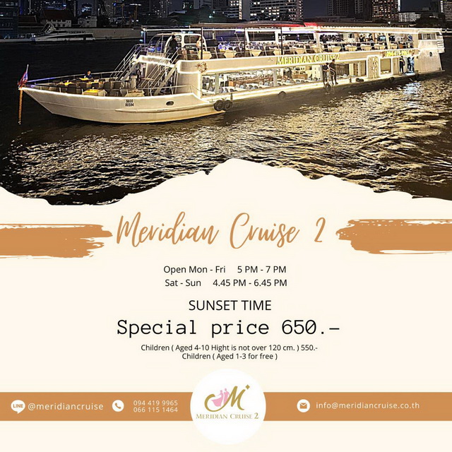 เมอริเดียน ครูซ 2 ขอเชิญชวนทุกครอบครัวมาล่องเรือรับทานบุฟเฟต์นานาชาติ ท่านสามารถเลือกรอบพร…