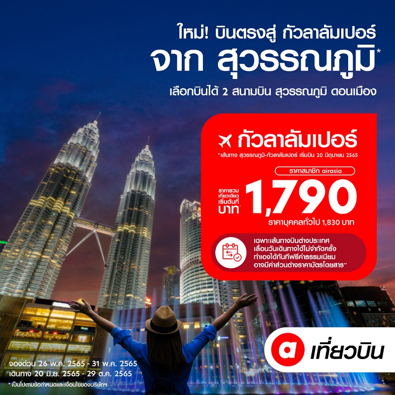 Read More“แอร์เอเชีย” เปิดเส้นทางบินใหม่ “สุวรรณภูมิ-กัวลาลัมเปอร์” 2 เที่ยวบินต่อวัน เริ่มบิน 20 มิย.นี้