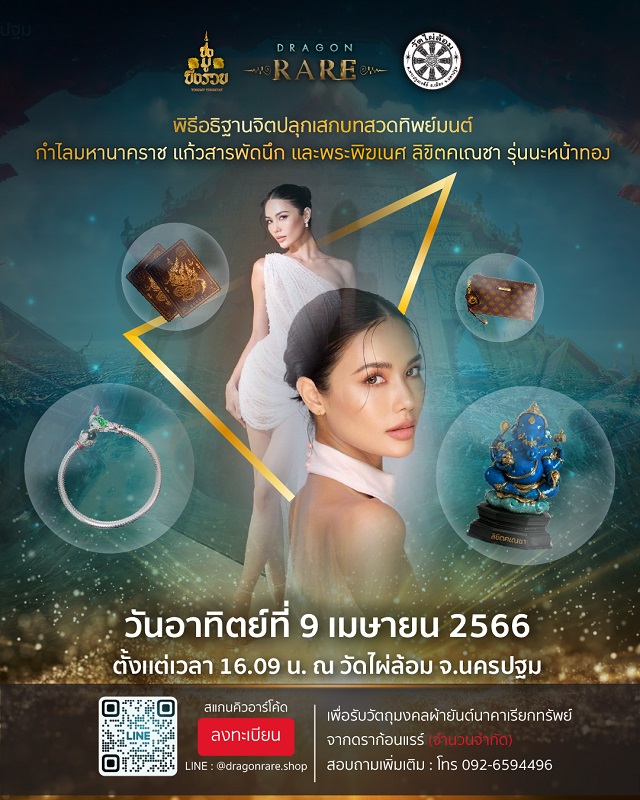 Read MoreDragon rare จับมือ “ยิ่งมูยิ่งรวย” จัดงานใหญ่ต้อนรับสงกรานต์ กับพิธีอธิษฐานจิตปลุกเสกกำไลมหานาคราช แก้วสารพัดนึก – พระพิฆเนศ ลิขิตคเณชา รุ่นนะหน้าทอง โดยหลวงพี่น้ำฝน พร้อมการแสดงรำไทยจาก “น้ำตาล-ชลิตา ส่วนเสน่ห์” และชมการบินโดรนแปลอักษรบนท้องฟ้า 9 เมษายนนี้ ณ วัดไผ่ล้อม จ.นครปฐม