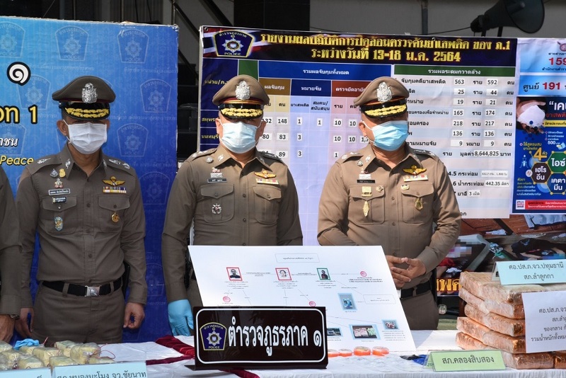 Read Moreผบช.ภ.1 แถลงผลปฏิบัติการระดมปิดล้อม ตรวจค้นเครือข่ายนักค้ายาเสพติดรายสำคัญ วันที่ 13–18 ม.ค.64 จับผู้ต้องหา 592 ราย ยึดของกลางยาเสพติดจำนวนมาก ยึดทรัพย์สินเกือบ 9 ล้านบาท