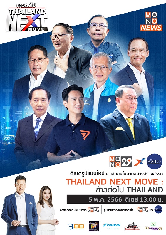 Read More“ช่อง MONO29” เปิดเวทีดีเบต “ก้าวต่อไปไทยแลนด์” แกนนำ 8 พรรคการเมืองมาชูนโยบายพิชิตใจประชาชน
