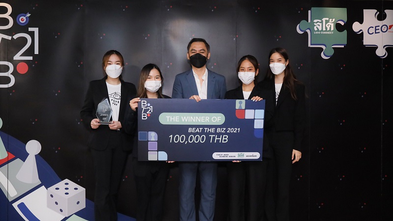 คุณจี๊บ เทพอาจ ตบรางวัล 100,000 บาทให้แก่ทีม “PANGPAO” 4 สาวเก่งจากธุรกิจซาลาเปาผู้ได้รับรางวัลชนะเลิศในการประกวด Beat the Biz 2021 โครงการคุณภาพจาก CEO Chula
